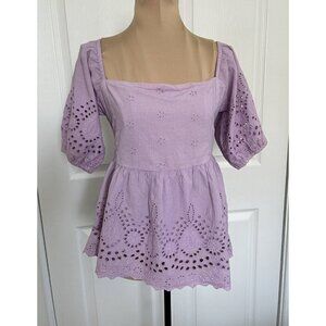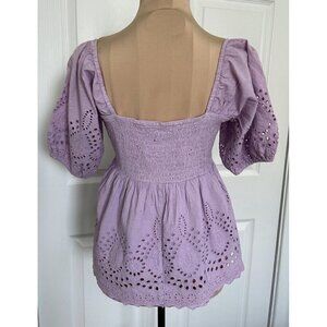 Walter Baker Novalee Top Lavender Eyelet Square Neck Short Puff Sleeve