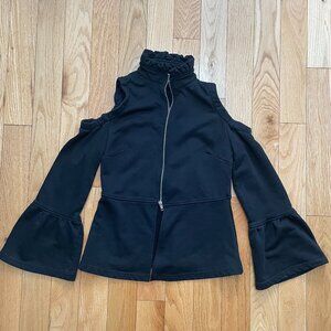 Top Front Zip Top Sweatshirt Cotton Sweatshirt Cutout Shoulder Peplum Sleeves