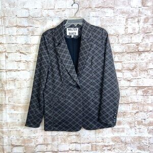 Walter Baker Plaid Blazer Size Medium -Notch lapels - Long sleeves - Single button closure Front pockets - Single back vent - Polyester/rayon/spandex - gray brown plaid knit