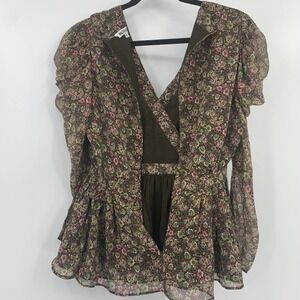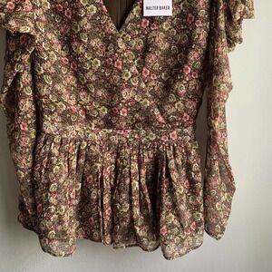 Walter Baker Rita Puff Sleeve Surplice Floral Print Peplum Top