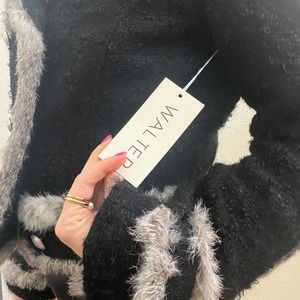 Walter Baker Rabbit Fur Trim Tweed Blazer Jacket - NWT