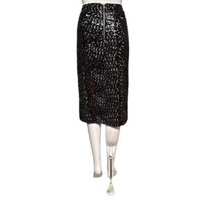 Walter Baker Skirt Sz 6 Black Silver Sequin Metallic Split Front Pencil Skirt.