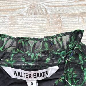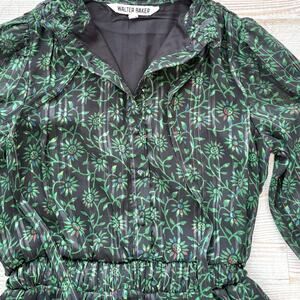 Walter Baker Tezza Gathered Floral Metallic Chiffon Mini Dress In Forest Tulip 0