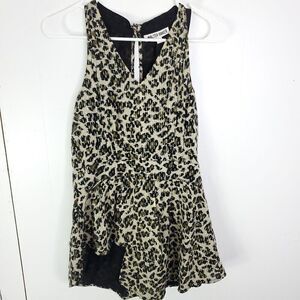 Walter Baker Top Womens M Peplum Asymmetrical Hem Leopard Exotic Animal