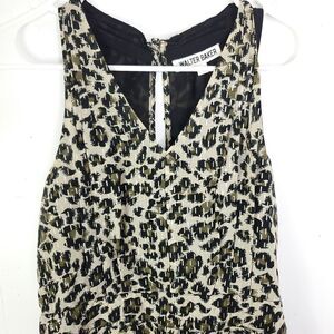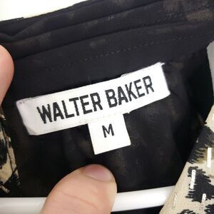 This is a stylish brown Walter Baker tank top with an animal print design, perfect for going out. It has a sleeveless style with a V-neck neckline and a pullover closure. Made of lightweight polyester material, it is lined for comfort. The tank top is in size M, featuring a regular fit suitable for summer, fall, and spring seasons. Ideal for women looking for a basic yet trendy piece to enhance their wardrobe.