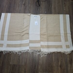 Walter Baker Veruschka Poncho Camel Ivory Fringe Wrap O/S