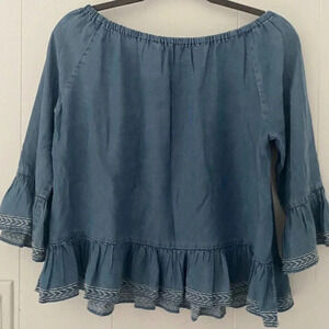 Walter Baker Womens Torrence Off The Shoulder Top Blue Chambray Size L
