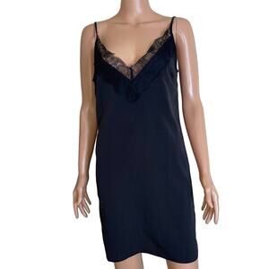Walter Baker slip dress camisole night gown black satin like material lace top SZ SM