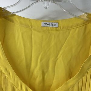Walter Blouse Womens XS Yellow Short Sleeve Pleated Ruffle VNeck Button Up Silky