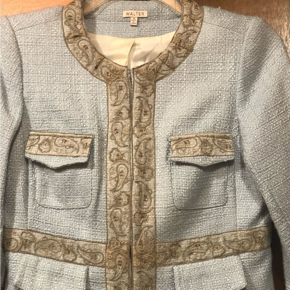 Beautiful jacket/ Top by WALTER. Preloved yet in near excellent condition. Pale blue, Size: 12,