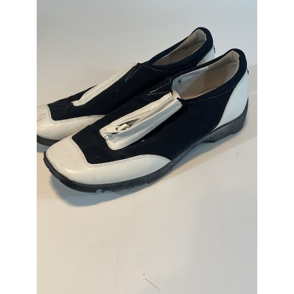 Walter Genuin Linea Stretch Golf Shoes Size 6 Black White Zip Up Made In Italy