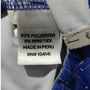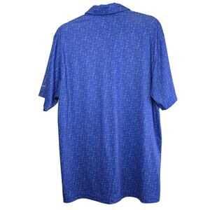 Walter Hagen performance golf polo in blue with subtle geometric print. Designed with lightweight, moisture-wicking stretch fabric to keep you comfortable on and off the course. Classic collared design with short sleeves.