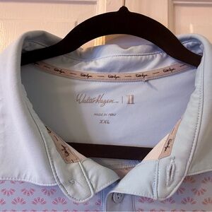 Elevate your wardrobe with the Walter Hagen Blue Polo, designed with a subtle geometric pattern and crafted from high-quality moisture-wicking fabric for superior comfort and style on the golf course.