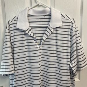 Walter Hagen Essentials Golf Polo Shirt Mens White/Gray Striped Polyester Sz.XL