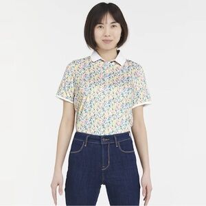 The shirt's multicolor Fresco Ditsy Lemon pattern adds a playful touch to your wardrobe, perfect for those who love to infuse a bit of Aloha spirit or a bohemian flair into their everyday look. Machine washable and easy to care for, this polo shirt is an ideal choice for the modern woman who values both performance and style in her athletic apparel.
