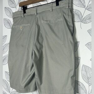 Walter Hagen brand golf shorts. Size 34. Green / blue pattern. Great athletic bottoms. Quality material. Smooth. Wicking feel. These are in great shape. No rips or holes however there are a few spots on them (pictured) that may or may not be able to be washed out. Please see all photos. 11 logo.