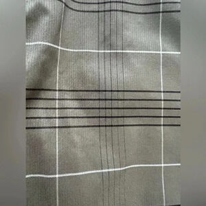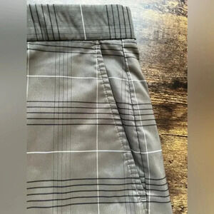 Men’s lightweight golf shorts. 1- button, 1- hook,, 7” zipper fly closure. Belt loops. 4- and pockets. 2 side slide in, 2 back slit pockets, 1- had button closure. Flat front shorts. Very lightweight and dimly feeling material. Like new condition. Stripes throughout print.