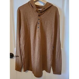 Walter Sky Top Large Brown Henley Sun Hoodie Pullover Base Layer WS-MH02 Merino
