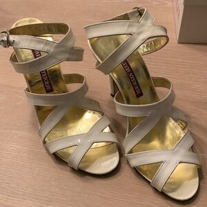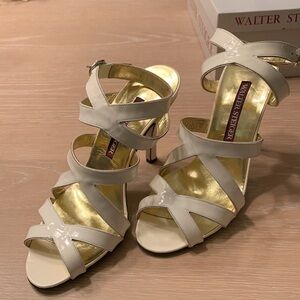 Walter Steiger Vernice Bianca White patent high heel multi strap sandals Size 8A