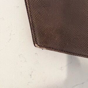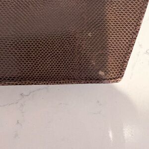 This is a vintage luxury piece. Scratch on leather. Wear at corners. Lining in great condition. See photos.