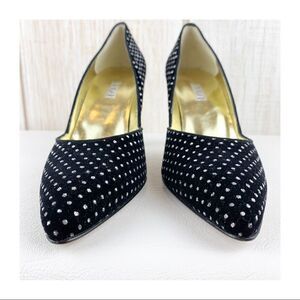 Walter Steiger Black Velvet Pumps with Silver Glitter Dots Sz 9AA NWOB.