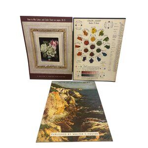 Lot of three vintage Walter T. Foster oversize art instruction books: Flowers (No. 7), Landscapes (No. 8), and Seascapes. Each measures about 13.75" x 10.25" and features full-page demos, palettes, and the well-known “How to Mix Color / Color Chart” spread (pp. 30–31). Great mid-century studio references and display pieces.