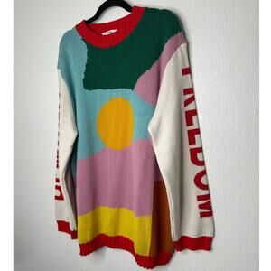 UNIQUE Walter Van Beirendonck Demand Freedom 100% Super Fine Wool Multi-Color Abstract Floral Design Sweater Pull over jumper