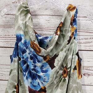 Walter- Women's Floral Cowl Neck Bubble Hem Sleeveless Dress Size 10. Shell 100%Silk. Lining 100%Polyester. Approx. measurements pit to pit 18 in. Dress length 36 in. Missing belt and does have some fabric pulls. Pre-owned in good condition, no holes.