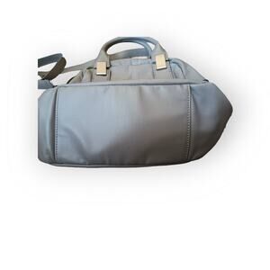 Leather with Tweed fabric trim, gray, zipper closure 3 inside pockets 11x10x5