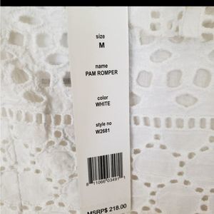 Walter Baker White Eyelet V-Neck Ruffle Open Back Sleeveless Shorts Romper M