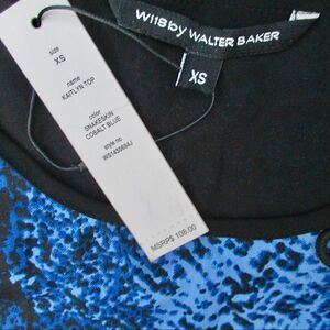 Walter Baker Cobalt Snakeskin Semi-Sheer Blouse
