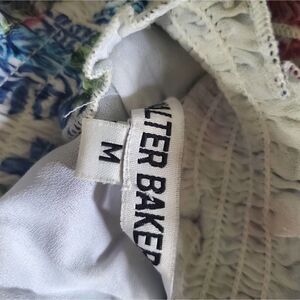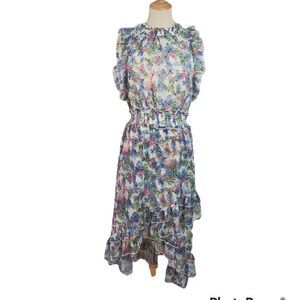 Little high low skirt. Stretch waist and stretch high neck. Little embroidered white dots throughout. Pull on style. Lightly worn