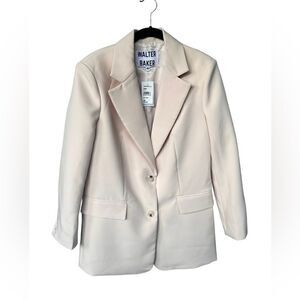 Introducing the Walter Baker Kira Blazer, a stunning piece designed for the modern woman who exudes energy, eclecticism, and edge. Crafted in bone with a notch lapel, dual front pockets, button cuffs, and a vented back hem, this blazer is both stylish and functional. Measuring approximately 30.5 inches from shoulder to hem and featuring a two-button front, this blazer offers a classic yet contemporary silhouette. Made from a luxurious blend of 95% polyester and 5% spandex, this blazer is both comfortable and durable. For best results, we recommend dry cleaning only. Imported from the finest materials, the Walter Baker Kira Blazer is the perfect addition to your wardrobe.