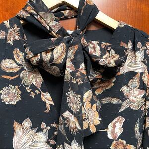 Walter Baker Selena Black Floral Neck Tie Blouse Large