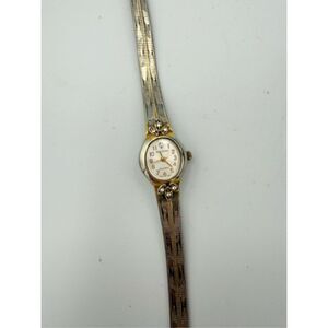 Waltham Women Silver Gold Toned Stainless Steel Band Oval Shaped Face Wristwatch