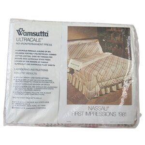Wamsutta Nassau No-Iron Dbl Flat Sheet Beige Multicolor 50% Cotton/Poly 1981 Vtg