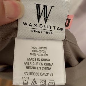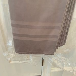 Instantly elevate your table setting with the sleek stylish table cloth from Wamsutta. A solid darker grey color designed with a pretty tonal jacquard border around the bottom. 100% cotton; stain resistant. Imported. Machine washable but recently dry cleaned to sell. No flaws. EUC.