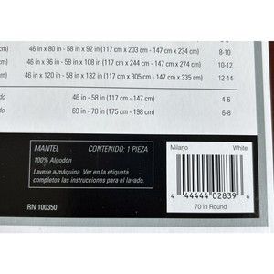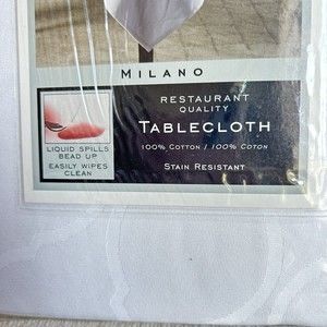 Wamsutta Milano White100 % Cotton Woven Fabric 70" Round Banquet Tablecloth Seats 4-6 NIP Add a touch of elegant style to your home with the Wamsutta Classic Tablecloth. Chic, stain resistant and features a Restaurant quality The sophisticated Wamsutta Classic Tablecloth provides the perfect, elegant touch to your table setting Creates a chic, yet comfortable look Stain-resistant Liquids spill bead up Easily wipes clean Indoor use only 100% cotton Machine wash Napkins are not included. Enlarge pictures, read descrption, check measures prior to purchase !