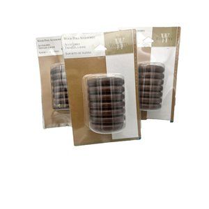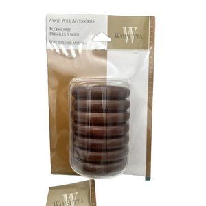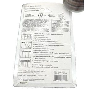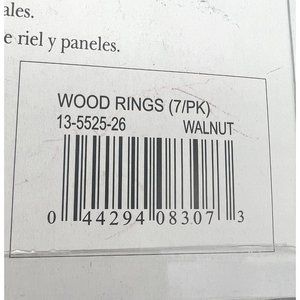 Wamsutta Wood Curtain Drapery Rings in Walnut color, hook eyes, no clips included. This listing is for 3 packs with 7 rings in each pack for a total of 21 rings. For use with a 1 1/2" diameter pole. Unopened, new in package.