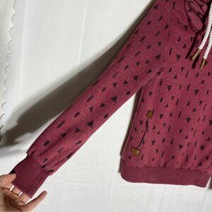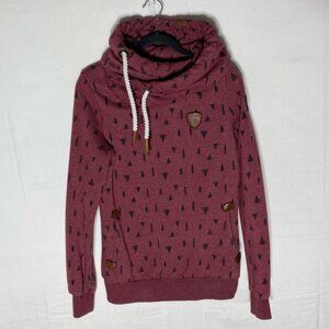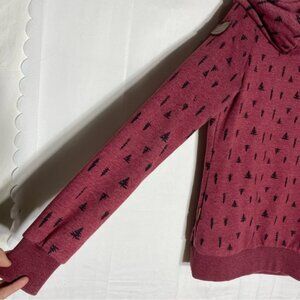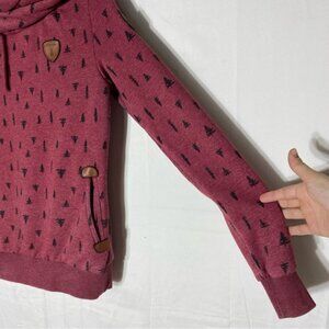Wanakome Burgundy Cowl Neck Hoodie W Tree Print XS