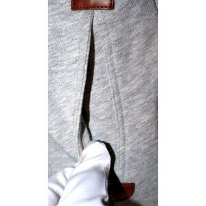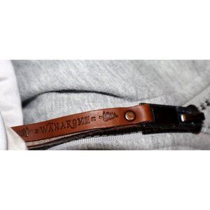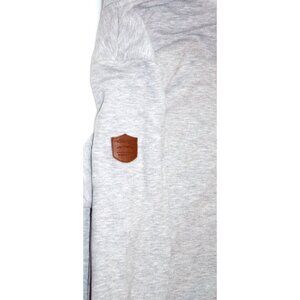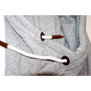 Wanakome women's XL relaxed-fit hoodie in soft gray with a cozy cowl neck and zip-up front. Made from high-quality fabrics, designed for outdoor comfort with signature rope drawstrings and leather accents.