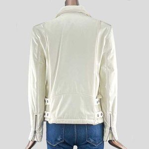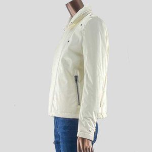 Wanda Nylon Paris ivory ski jacket featuring diagonal zip front closure, epaulets at shoulder, and double snap adjustable feature on back.