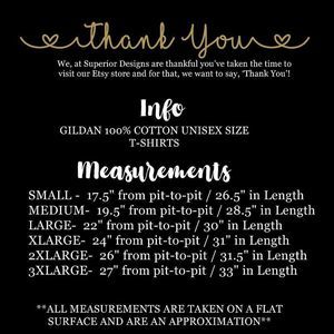 •Each shirt is made custom upon order. Made With Gildan Unisex Shirts.