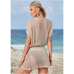 Check out this Wander Ago Beach Knit Bikini Cover-Ups Nets Short Skirt today!