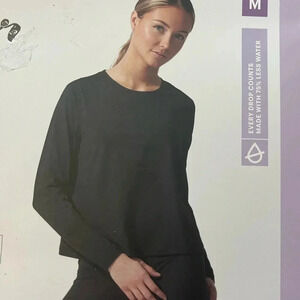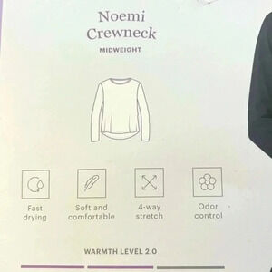 Brand new with tags, never worn, still inside original packaging, Wander by Hottotties, Noemi Crewneck Athletic Top, Size Medium, relaxed fit, soft and comfortable, Midweight, warmth level is 2, fast drying,, 4 way stretch, odor control, color is black heather