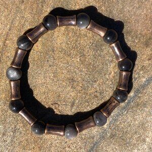 Wanderer and Gatherer Bracelet - Silver Obsidian and Bamboo brass bead SM-MED