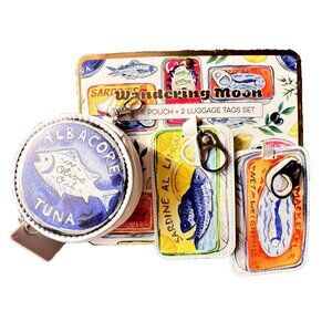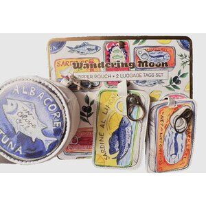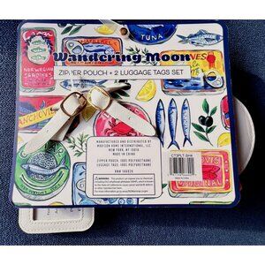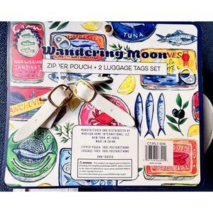 Wandering Moon Zipper Pouch + 2 Luggage Tags Sardines Caviar Traveler Gift FUN