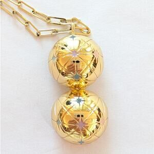 - The necklace is made of recycled brass and plated with 14K gold