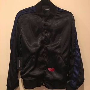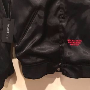 Wanderluste Night Rider Satin Bomber. This is the Instagram account @Upscalehypes clothing company. Attached is a link to the item. I bought this and realized it was too small. It is a size small. Tags still on. https://wanderluste.co/collections/outerwear/products/night-rider-satin-bomber-jacket.