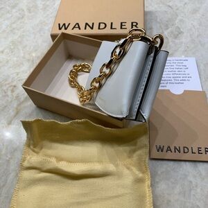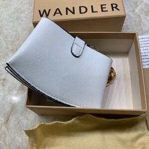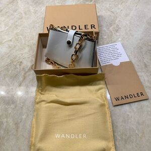 Wandler delivers a cardholder featuring a polished gold chain strap to hold cards and cash in the most chic way. Leather: Smooth cowhide